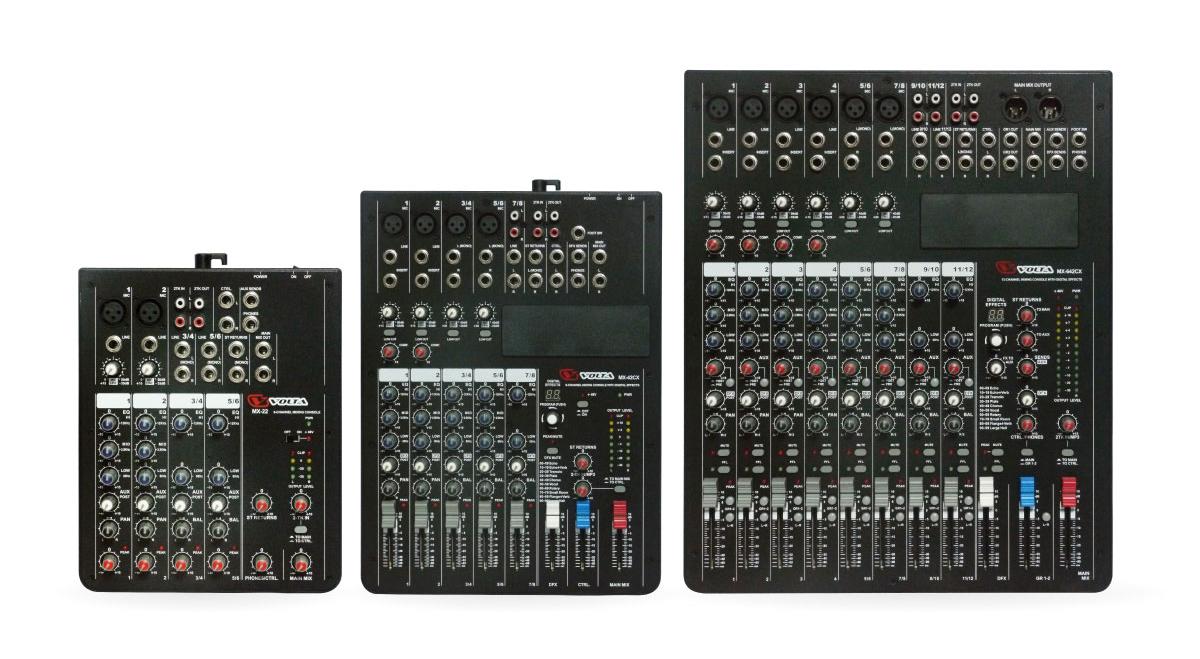 И, наконец, компактные микшерные пульты VOLTA. Эта торговая марка представлена серией MX, которая успешно живёт на рынке уже более пяти лет.