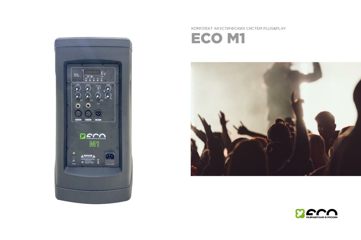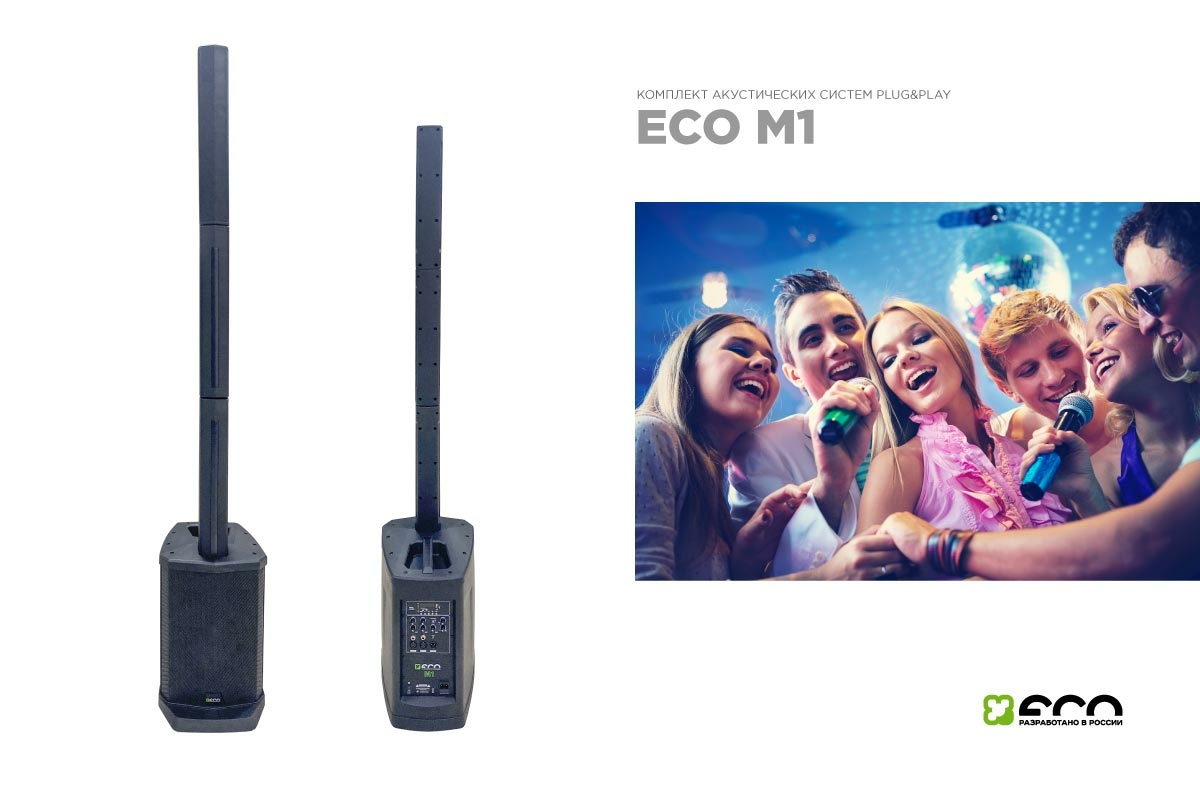 Звукоусилительный комплект ЕСО М1 предназначен для использования на развлекательных мероприятиях небольшого масштаба.