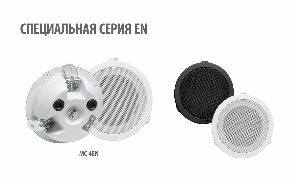 Микросерия потолочных громкоговорителей серии EN разработана специально под жесткие требования европейского стандарта безопасности EN54-24. Данный документ описывает множество физических параметров для громкоговорителей, ответственных за работоспособность устройств в экстренных ситуациях. К ним относятся как используемые материалы корпуса и диффузора, так и огнеупорные свойства материала вводного терминала. Звуковые параметры оцениваются по звуковому давлению и разборчивости звучания, прежде всего, в речевом диапазоне.