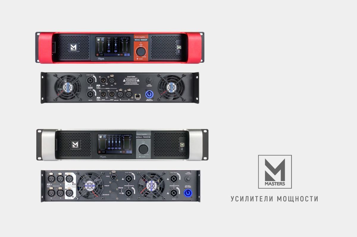 В модельном ряду MASTERS пока присутствуют две модели рэковых усилителей, используемых для линейных массивов серий DA VINCI и DALI, и около 10 моделей встраиваемых усилительных модулей для серий PICASSO и RUBENS.