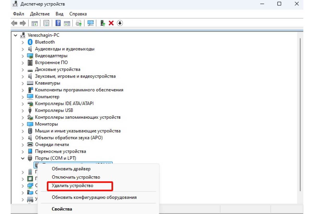кликните по этому порту правой кнопкой мыши и выполните процедуру удаления устройства с некорректным драйвером.
